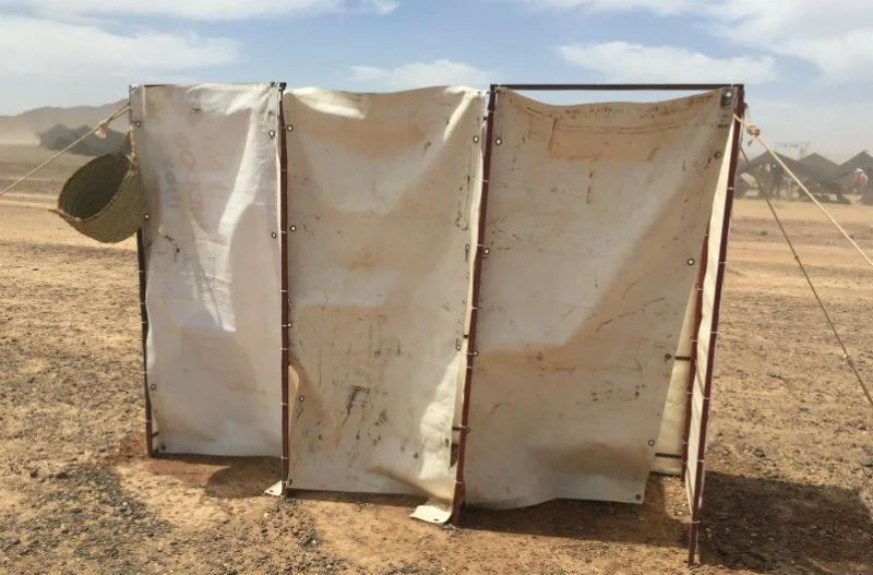 The wind will blow straight through the open tents in the MDS bivouac. Sometimes the tents collapse due to heavy winds. Toilet facilities are incredibly basic and often the scarcely scattered bushes provide a more attractive option.
