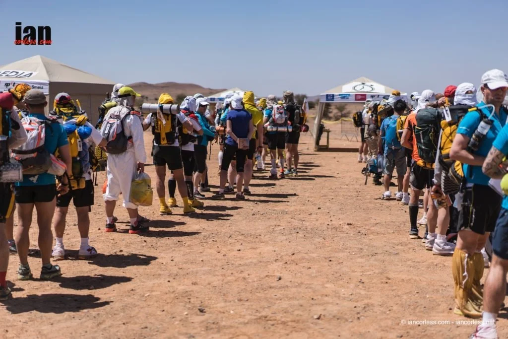 This is where the race staff check the weight of your backpack. It should adhere to the minimum weight defined in the race rules. At the point of writing this is 6.5kg. This includes all your food including Day 1 breakfast. However you will eat your Day 1 breakfast before you start running.