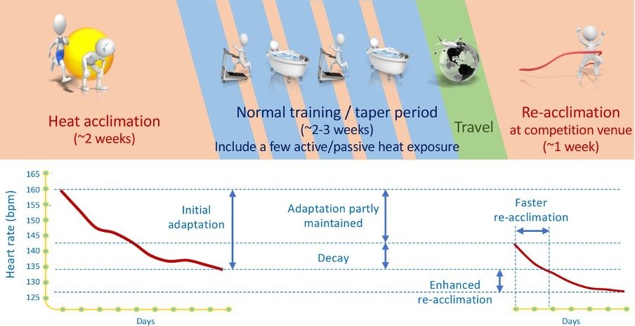 Racinais, S., & Périard, J. D. (2020). Benefits of heat re-acclimation in the lead-up to the Tokyo Olympics. British journal of sports medicine, 54(16), 945-946.