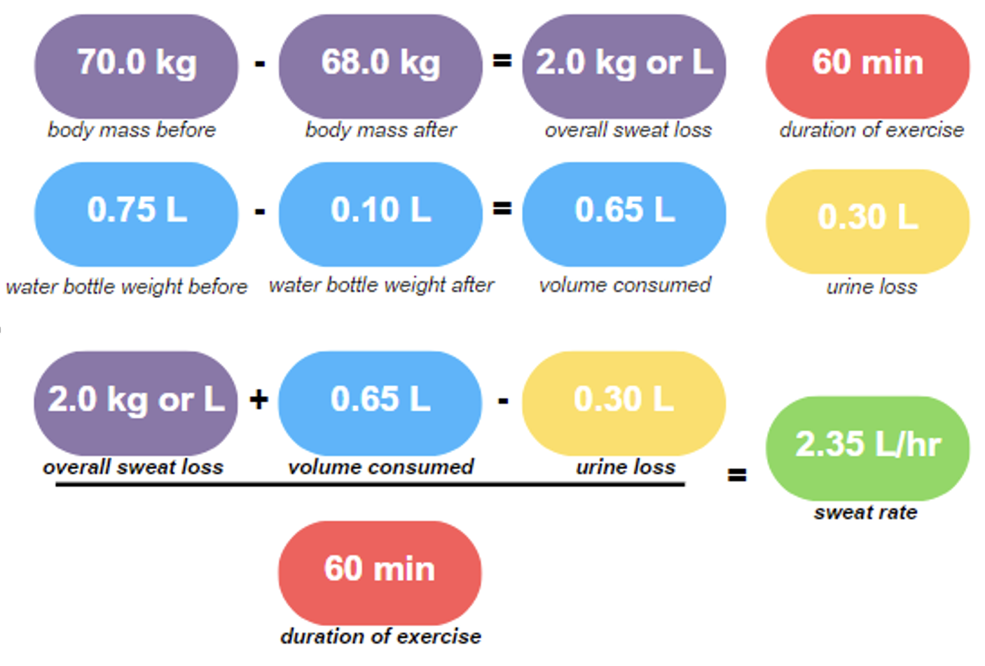Figure 1. Sweat rate calculations for an athlete who weighs 70 kg and is exercising for 1 hour.