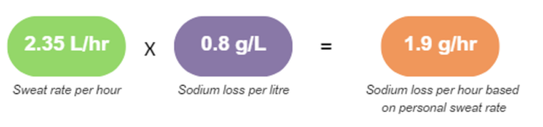 Figure 3. Sodium loss calculations based on personal sweat rate of athlete who weighs 70 kg and exercises for 1 hour.